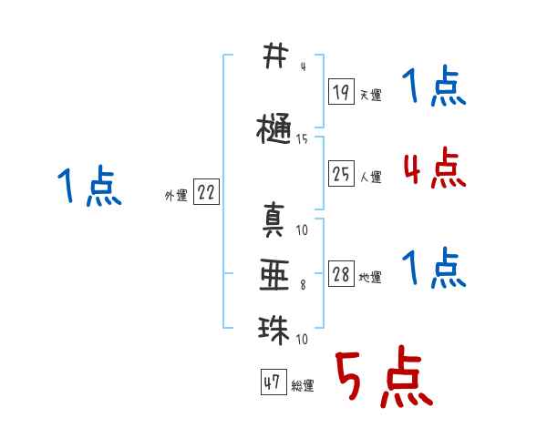井樋真亜珠さんの画数の鑑定結果