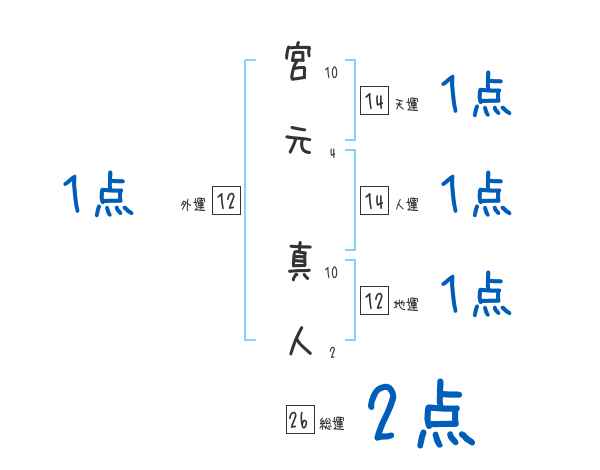 宮元真人さんの画数の鑑定結果