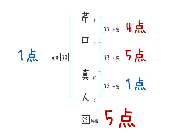 芹口真人さんの画数の鑑定結果