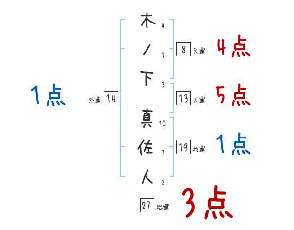 天運![]() | 木ノ下真佐人さんの天運は8画の4つ星!勤勉家。根気強く努力し成功する。忍耐力がある。 家系が持つ宿命的な運勢を表します。祖先から受け継いだ苗字ですので自分の力が及びません。家柄を象徴します。 |