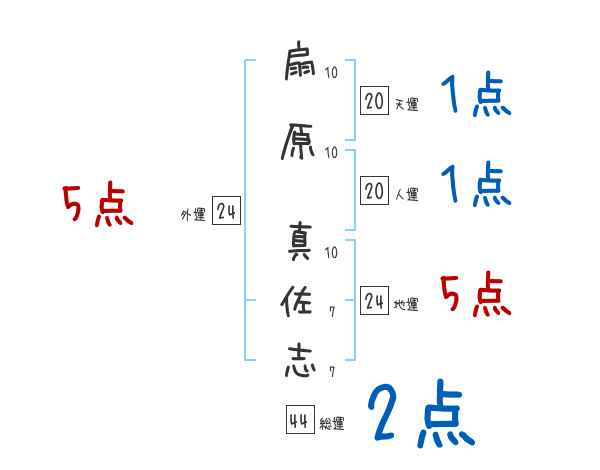外運![]() | 扇原真佐志さんの外運は24画の5つ星!家庭運が良く順調な人生。金運にも恵まれる。 生活面を象徴する運勢です。外部から受ける影響力を表し、結婚運、家庭運や職場、環境への順応性を表します。 |