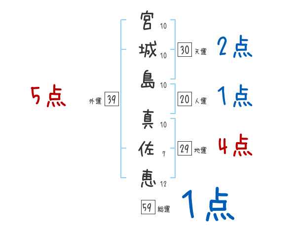 宮城島真佐恵さんの画数の鑑定結果