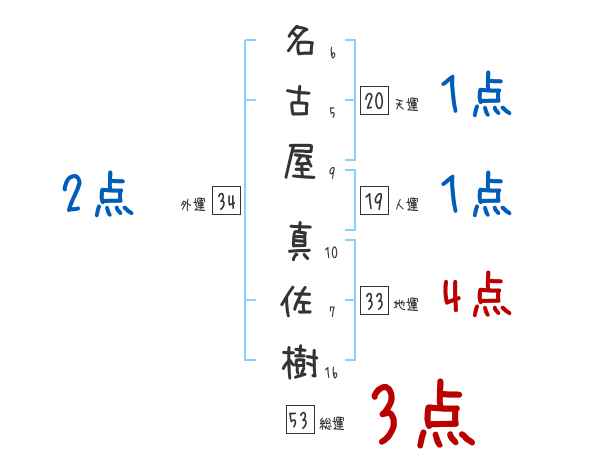 外運![]() | 名古屋真佐樹さんの外運は34画の2つ星!独創性に優れるが、自尊心が強く災難に注意しましょう。 生活面を象徴する運勢です。外部から受ける影響力を表し、結婚運、家庭運や職場、環境への順応性を表します。 |