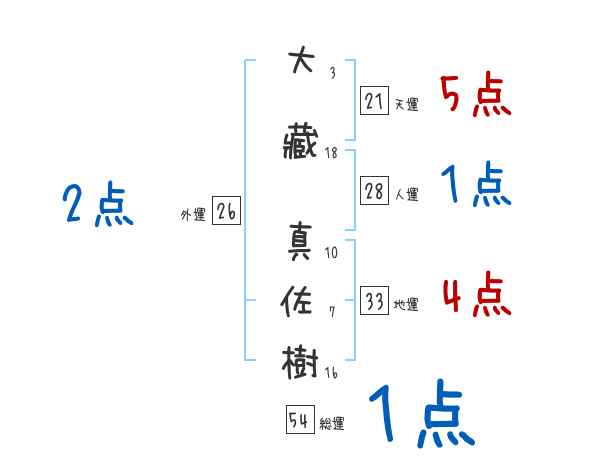 天運![]() | 大藏真佐樹さんの天運は21画の5つ星!統率力がある。独立し成功する。名誉を手に入れる。 家系が持つ宿命的な運勢を表します。祖先から受け継いだ苗字ですので自分の力が及びません。家柄を象徴します。 |