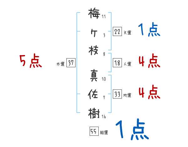 梅ヶ枝真佐樹さんの画数の鑑定結果