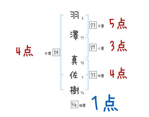 天運![]() | 羽澤真佐樹さんの天運は23画の5つ星!想像力に優れ活力がある。一代で成功し名誉を手に入れる。 家系が持つ宿命的な運勢を表します。祖先から受け継いだ苗字ですので自分の力が及びません。家柄を象徴します。 |