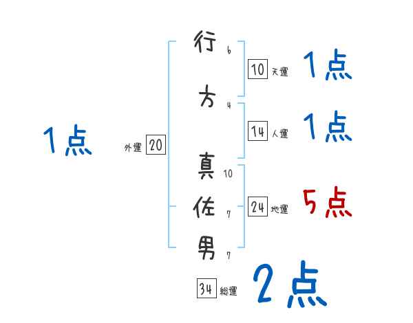 天運![]() | 行方真佐男さんの天運は10画の1つ星!不安を感じやすい傾向。ストレスを抱えないように注意しましょう。 家系が持つ宿命的な運勢を表します。祖先から受け継いだ苗字ですので自分の力が及びません。家柄を象徴します。 |