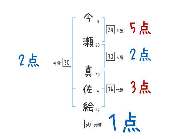今瀬真佐絵さんの画数の鑑定結果