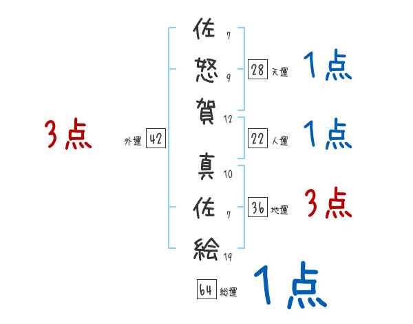 人運![]() | 佐怒賀真佐絵さんの人運は22画の1つ星!努力することが苦手ないっぽう手先が器用。芸術性にも優れる。 性格や才能などを表す2番目に重要な運勢です。人間関係や協調性、社会的な成功に影響します。主に20歳から50歳ぐらいまでの中年期の運勢を表します。 |