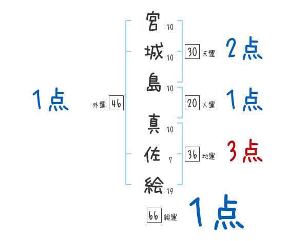 天運![]() | 宮城島真佐絵さんの天運は30画の2つ星!浮き沈みの激しさに注意しましょう。 家系が持つ宿命的な運勢を表します。祖先から受け継いだ苗字ですので自分の力が及びません。家柄を象徴します。 |