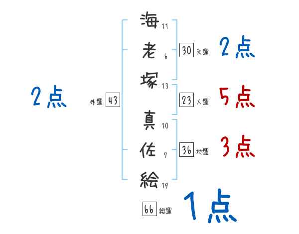 人運![]() | 海老塚真佐絵さんの人運は23画の5つ星!想像力に優れ活力がある。一代で成功し名誉を手に入れる。 性格や才能などを表す2番目に重要な運勢です。人間関係や協調性、社会的な成功に影響します。主に20歳から50歳ぐらいまでの中年期の運勢を表します。 |