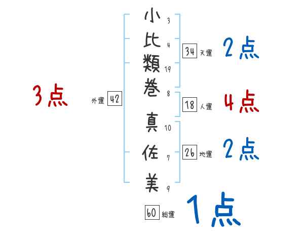 小比類巻真佐美さんの画数の鑑定結果