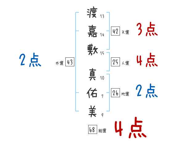渡嘉敷真佑美さんの外運は43画の2つ星