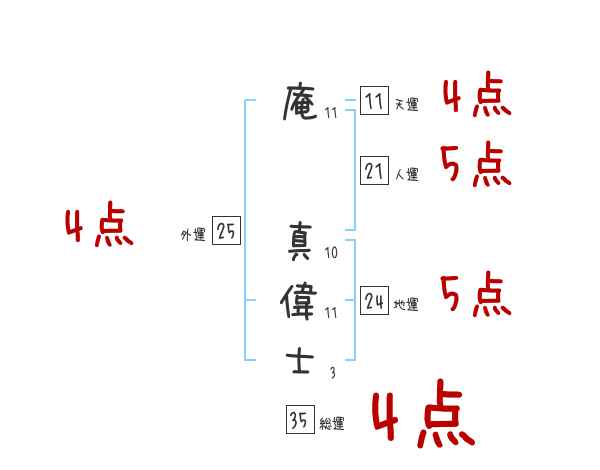 庵真偉士さんの画数の鑑定結果