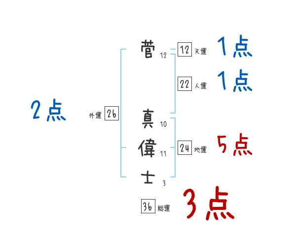 菅真偉士さんの画数の鑑定結果