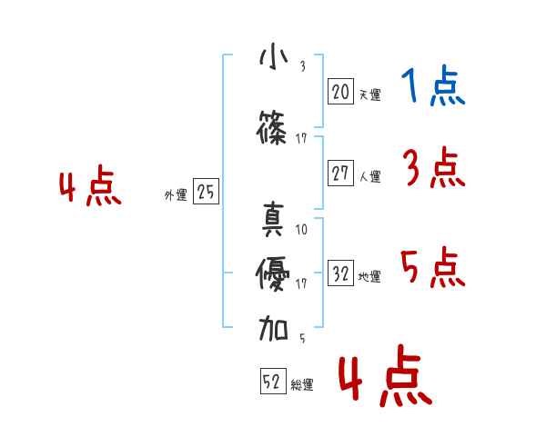 小篠真優加さんの画数の鑑定結果