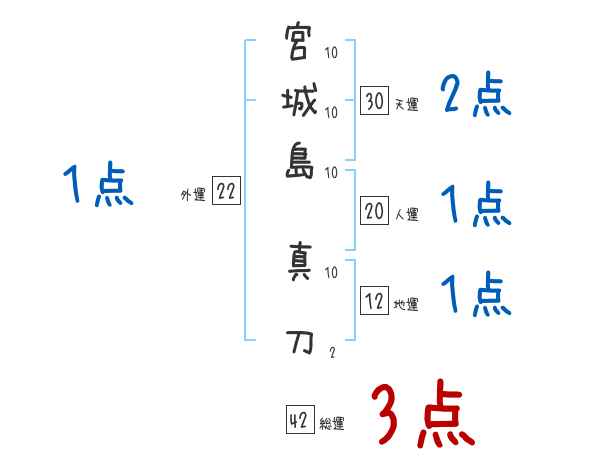 宮城島真刀さんの画数の鑑定結果