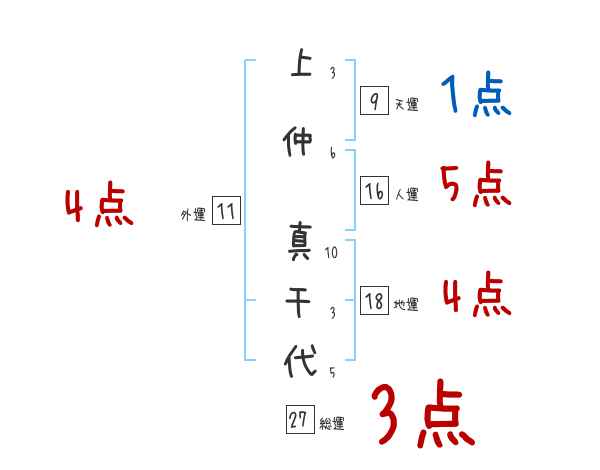 上仲真千代さんの画数の鑑定結果