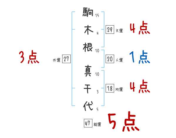 駒木根真千代さんの画数の鑑定結果