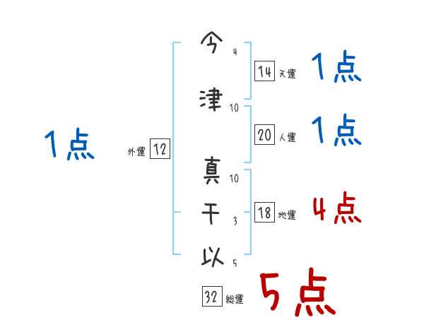 今津真千以さんの画数の鑑定結果