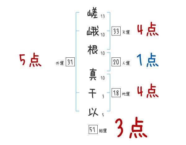 天運![]() | 嵯峨根真千以さんの天運は33画の4つ星!権力志向でプライドが高い。勇気があり運を切り開き成功する。 家系が持つ宿命的な運勢を表します。祖先から受け継いだ苗字ですので自分の力が及びません。家柄を象徴します。 |