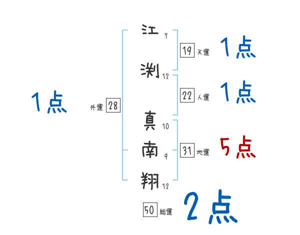 外運![]() | 江渕真南翔さんの外運は28画の1つ星!家庭環境に注意。スポーツで活躍できる能力があるかも。 生活面を象徴する運勢です。外部から受ける影響力を表し、結婚運、家庭運や職場、環境への順応性を表します。 |