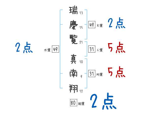 瑞慶覧真南翔さんの画数の鑑定結果