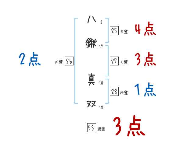 八鍬真双さんの画数の鑑定結果