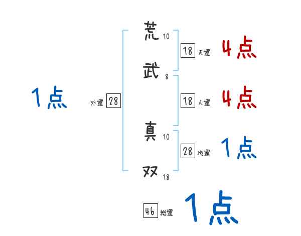 荒武真双さんの画数の鑑定結果