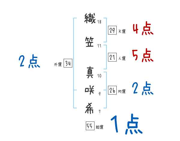 織笠真咲希さんの画数の鑑定結果
