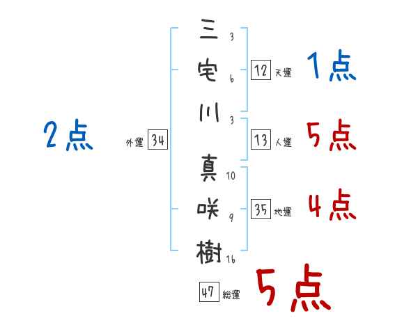 三宅川真咲樹さんの画数の鑑定結果