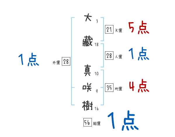大藏真咲樹さんの画数の鑑定結果