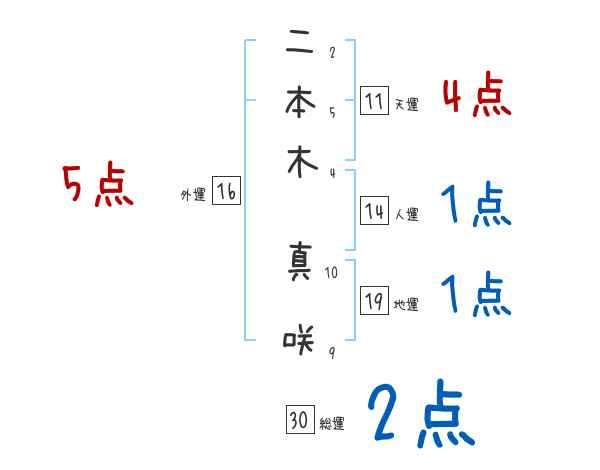 外運![]() | 二本木真咲さんの外運は16画の5つ星!人望が厚く大きく発展する。逆転成功が見える。 生活面を象徴する運勢です。外部から受ける影響力を表し、結婚運、家庭運や職場、環境への順応性を表します。 |
