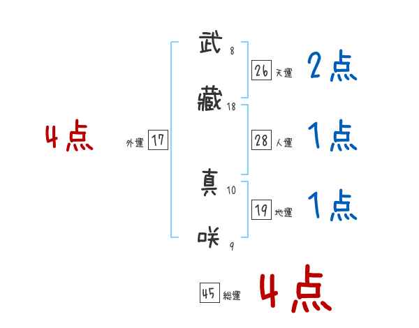 武藏真咲さんの画数の鑑定結果