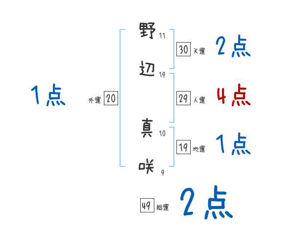 野辺真咲さんの画数の鑑定結果