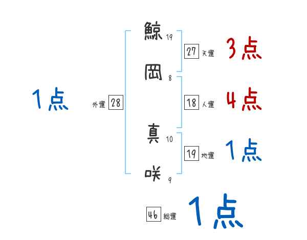 鯨岡真咲さんの画数の鑑定結果