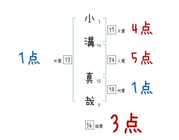 小溝真哉さんの画数の鑑定結果