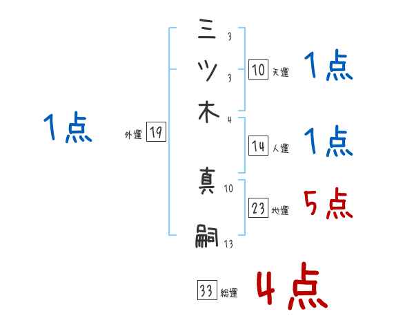 天運![]() | 三ツ木真嗣さんの天運は10画の1つ星!不安を感じやすい傾向。ストレスを抱えないように注意しましょう。 家系が持つ宿命的な運勢を表します。祖先から受け継いだ苗字ですので自分の力が及びません。家柄を象徴します。 |