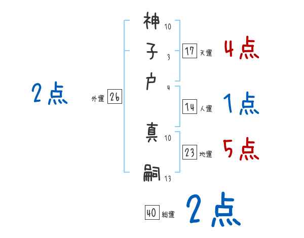 神子戸真嗣さんの画数の鑑定結果