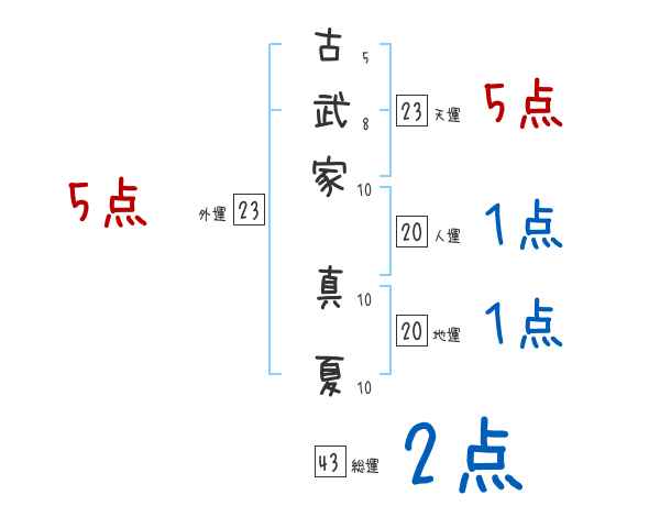 古武家真夏さんの画数の鑑定結果