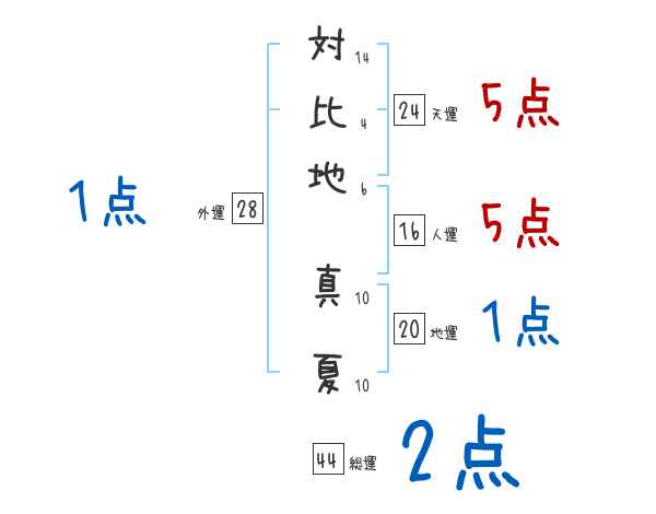 対比地真夏さんの画数の鑑定結果