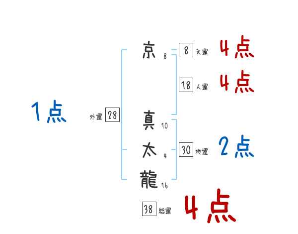 京真太龍さんの画数の鑑定結果
