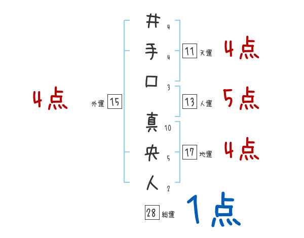 井手口真央人さんの画数の鑑定結果