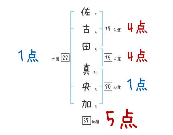 佐古田真央加さんの画数の鑑定結果