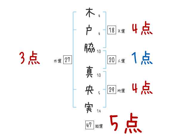 木戸脇真央実さんの画数の鑑定結果