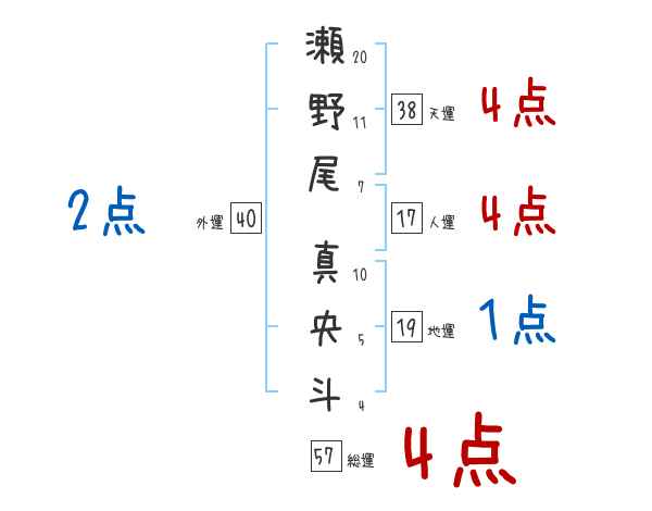 総運![]() | 瀬野尾真央斗さんの総運は57画の4つ星!向上心があり人望がある。地位を得る。 あなたの人生を表す1番重要な運勢です。生涯を通じて影響する総合運となり、主に50歳以降の晩年期に影響を及ぼします。 |