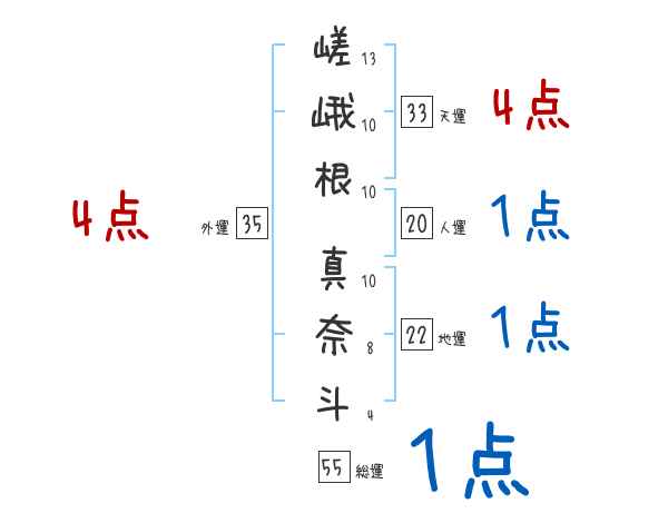 嵯峨根真奈斗さんの画数の鑑定結果