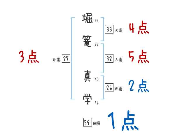 堀篭真学さんの画数の鑑定結果