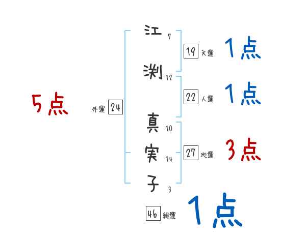 外運![]() | 江渕真実子さんの外運は24画の5つ星!家庭運が良く順調な人生。金運にも恵まれる。 生活面を象徴する運勢です。外部から受ける影響力を表し、結婚運、家庭運や職場、環境への順応性を表します。 |