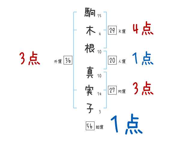 駒木根真実子さんの画数の鑑定結果